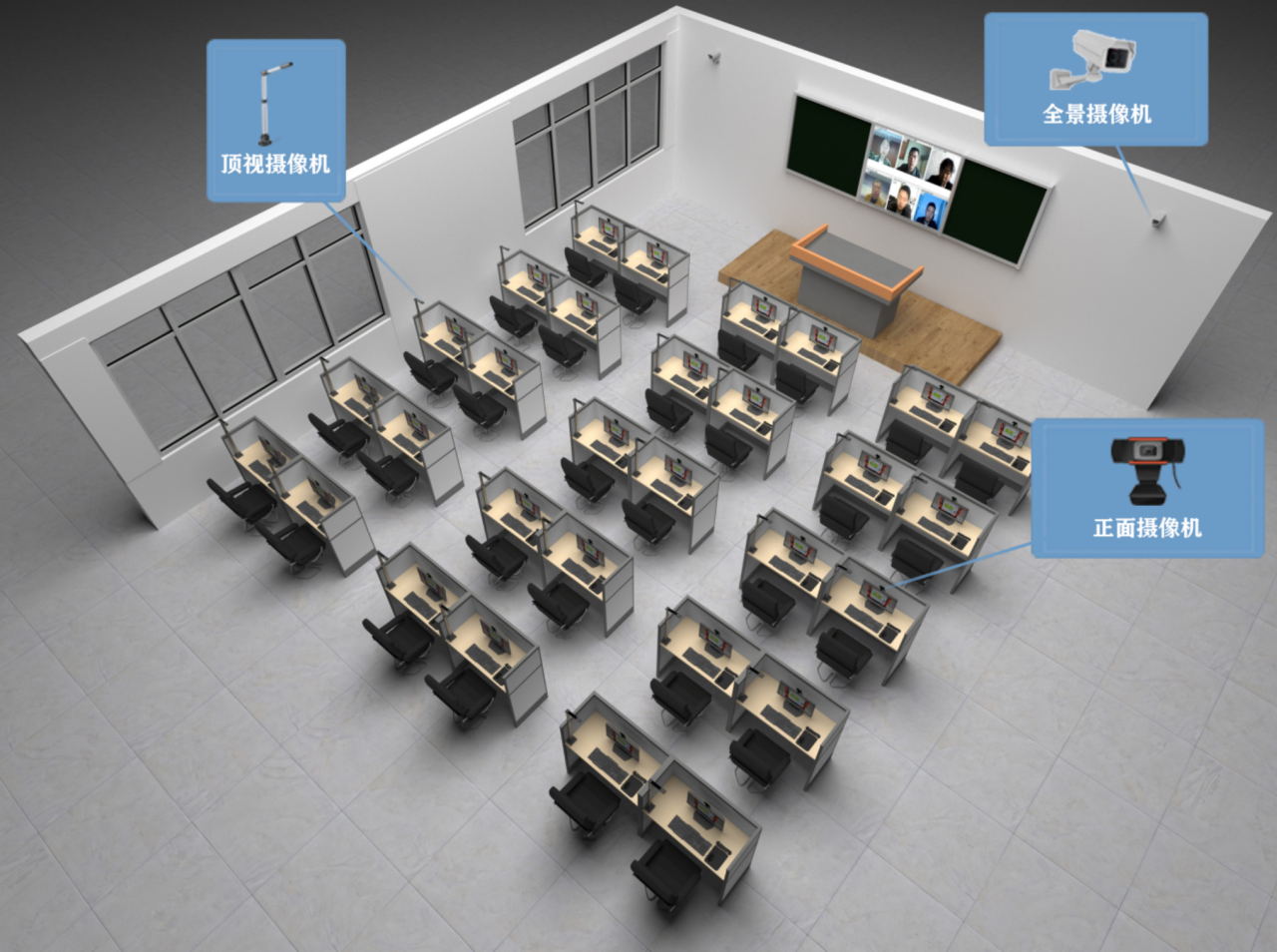特控以雙路高性能服務器集群為核心,打造新一代智能監考系統,單臺設備即可實現: